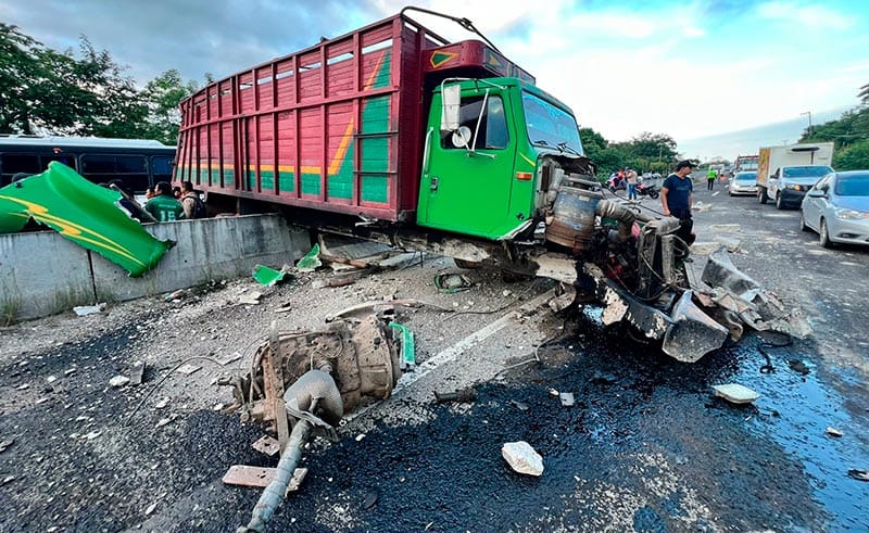 Cerca del balneario La Ceiba, municipio de Soconusco, el operador no habría guardado la distancia prudente de circulación y se estrelló por alcance contra un camión de redilas color verde con rojo que circulaba vacío.