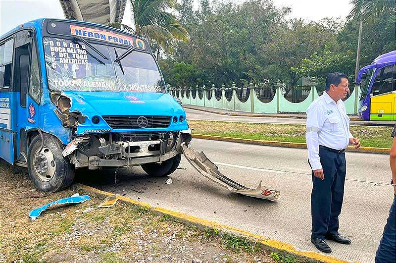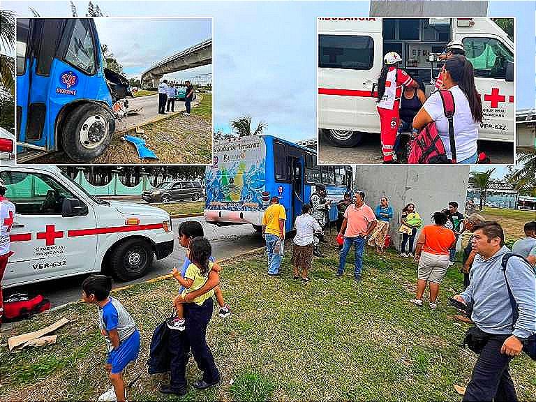 Un camión urbano perdió el control al abordar la curva en dirección a Paseo Ejército Mexicano Poniente, a la carretera libre Veracruz - Xalapa, colisionando contra la base del distribuidor La Boticaria.