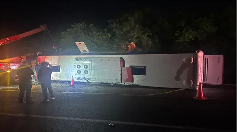 Oficiales de la Guardia Nacional (GN) confirmaron que el accidente ocurrió la madrugada del lunes, cerca de las 02:00 horas, a bordo del autobús viajaban 32 pasajeros, de los cuales 20 resultaron con golpes contusos y fracturas leves.