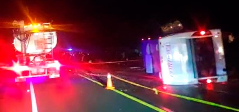 El autobús circulaba procedente de Ciudad Guzmán, Jalisco, con destino a San Cristóbal de las Casas, Chiapas, y, tras la volcadura, algunos pasajeros sometieron por un momento al operador, pero finalmente se dio a la fuga e iba con aliento alcohólico.