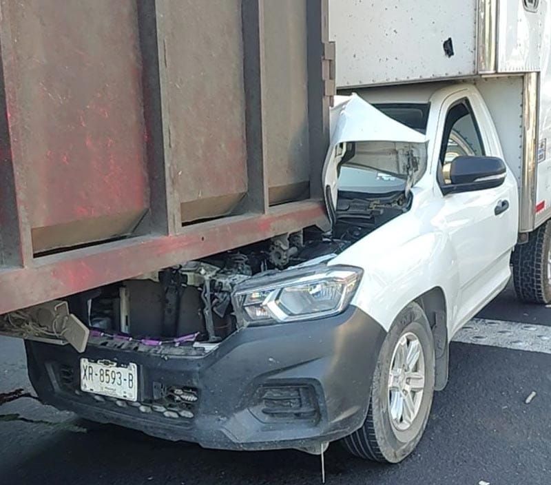 El golpe proyectó al vehículo particular, dejándolo incrustado debajo de otro camión tipo cañero.