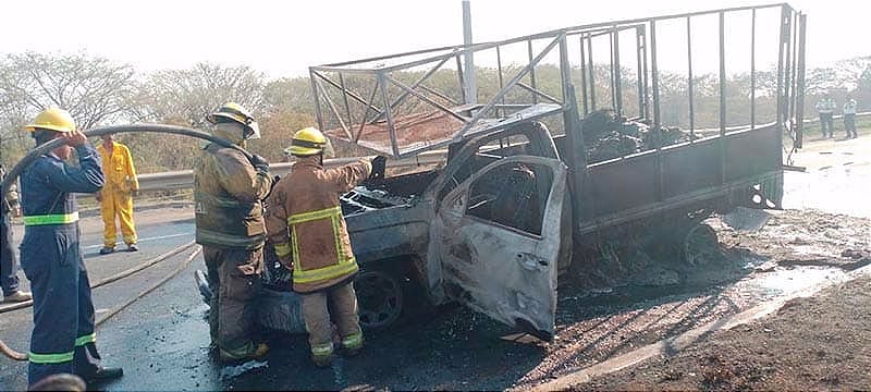 Por fortuna no se reportaron personas lesionadas, la camioneta registró pérdida total, no se ha establecido todavía la causa del incendio, pero no se descarta un corto circuito.