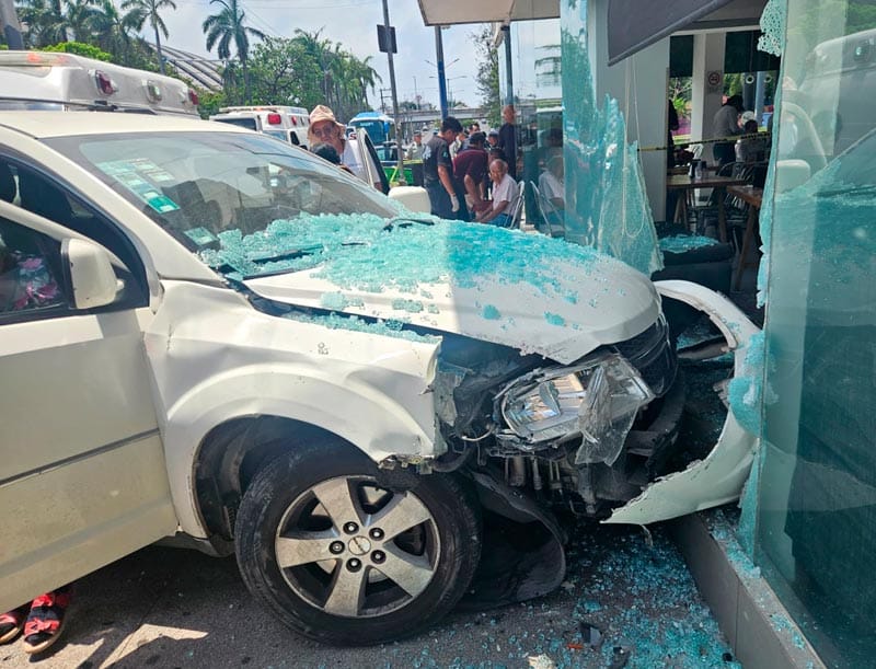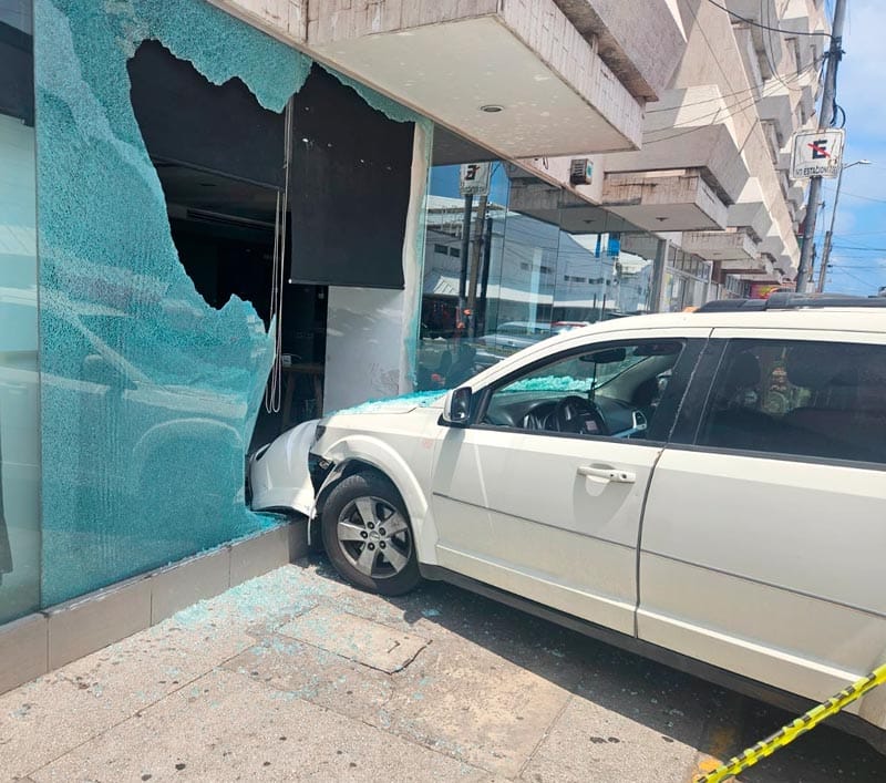 Se trató de una camioneta marca Chrysler tipo Journey, color blanco, modelo 2014, con placas YGP591A y conducida por su propietario Adán Fernández Palacios, misma que terminó contra el cristal del inmueble.
