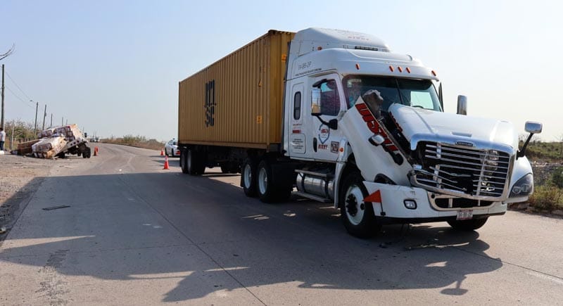 El impacto lateral hizo que la camioneta girara 90 grados y quedara destrozada, mientras que el tráiler, un Freightliner blanco con número económico 04-BB-2P, logró detenerse metros adelante.