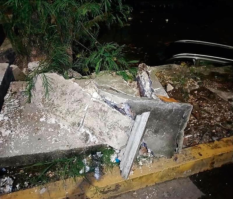 Sin embargo, chocó contra una estructura de concreto y eso generó que se proyectara al canal, en donde la unidad quedó prácticamente tapada por el agua, logrando salir ileso los tripulantes.