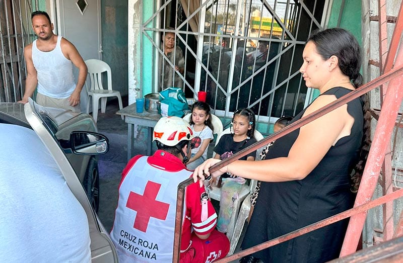Paramédicos de la Cruz Roja llegaron al sitio para dar los primeros auxilios a las tres menores y al motociclista.