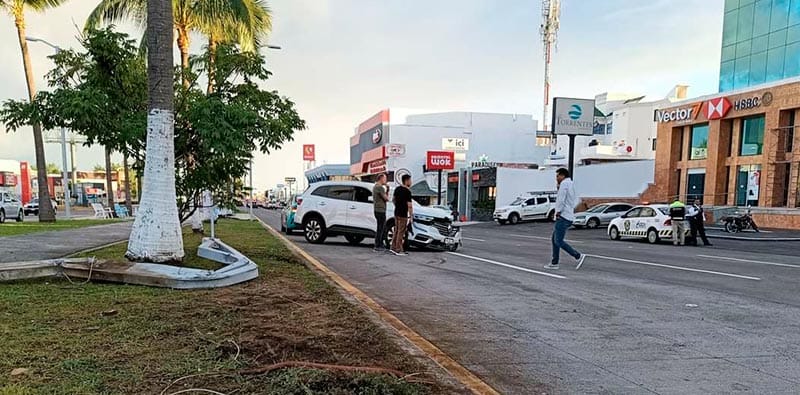 A 100 metros del cruce con Juan Pablo II, el conductor perdió control de la unidad, subió al camellón central estrellándose contra una luminaria, la cual derribó, a las 05:00 horas.