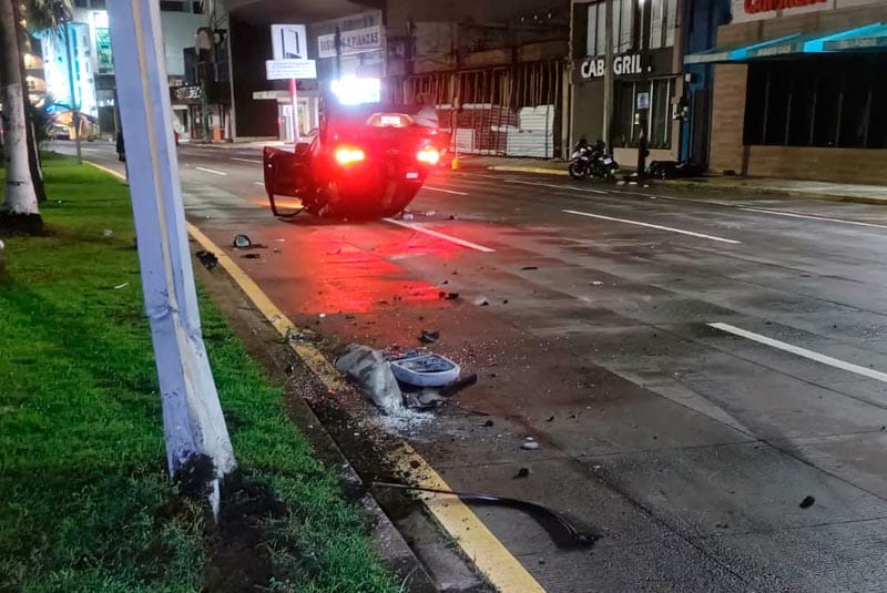 De pronto, perdieron el control, al parecer se quedó dormido, y se fueron hacia el camellón, impactando contra un poste del alumbrado, generando que la unidad se catapultara, volcándose sobre Ruiz Cortines.