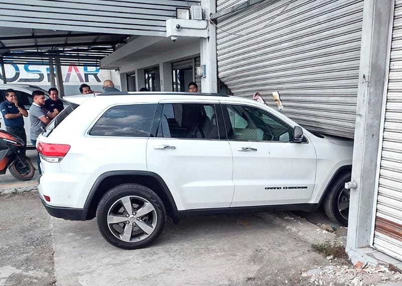 Una camioneta Jeep Grand Cherokee “se puso en marcha sola” e irrumpió en un área de ampliación de un negocio instalado sobre la carretera Veracruz-El Tejar, sin reporte de lesionados.
