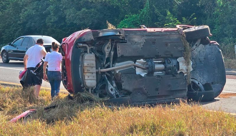 En la autopista Veracruz–Córdoba, a la altura del kilómetro 93, en el carril con dirección hacia la ciudad de Veracruz, una joven conductora se accidentó en su camioneta, marca Mazda, sufriendo una aparatosa volcadura.
