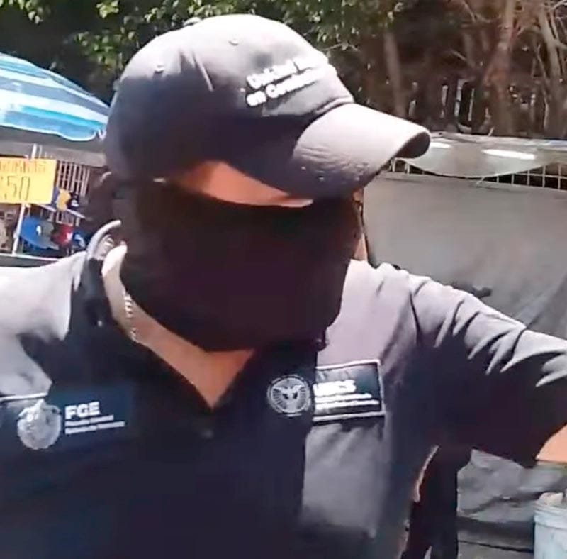 El detective que llevaba el rostro parcialmente cubierto ordenó al reportero que se retirara, argumentando que si seguía ahí podría sufrir un accidente, lo que indignó al comunicador, quien cuestionó al agente el por qué llevaba los ojos rojos.