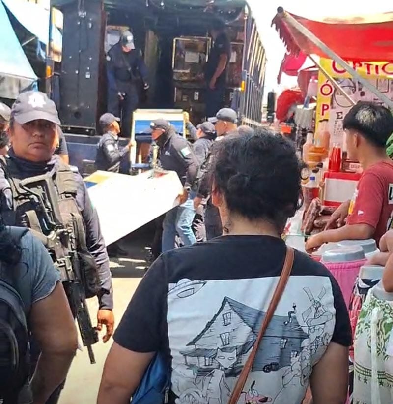 *Unos 50 policías con 20 detectives irrumpieron en establecimientos instalados en las calles de Nicolás Bravo esquina Juan Soto, bloqueando con camionetas el paso de vehículos