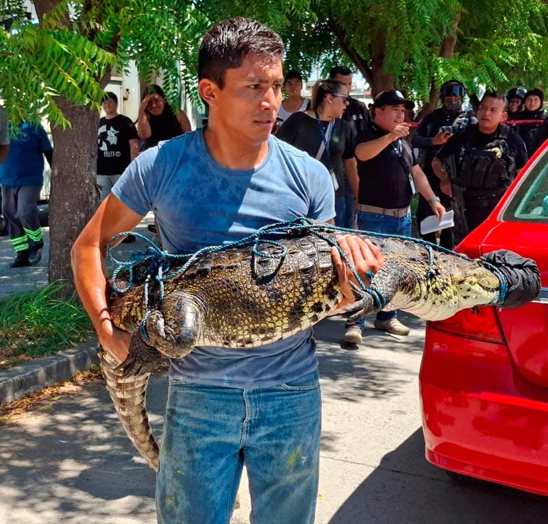 En calles del fraccionamiento Lagos de Puente Moreno, en el municipio de Medellín de Bravo, fue capturado por elementos de Protección Civil y Bomberos Municipales de Medellín, un cocodrilo de la especie Moreletti, de aproximadamente 1.90 metros de longitud.