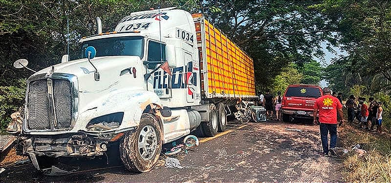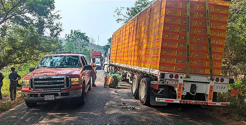 Después, una de las camionetas fue embestida brutalmente por un tráiler de la marca Kenworth acoplado a semirremolque tipo plataforma cargado con rejas para pollo.