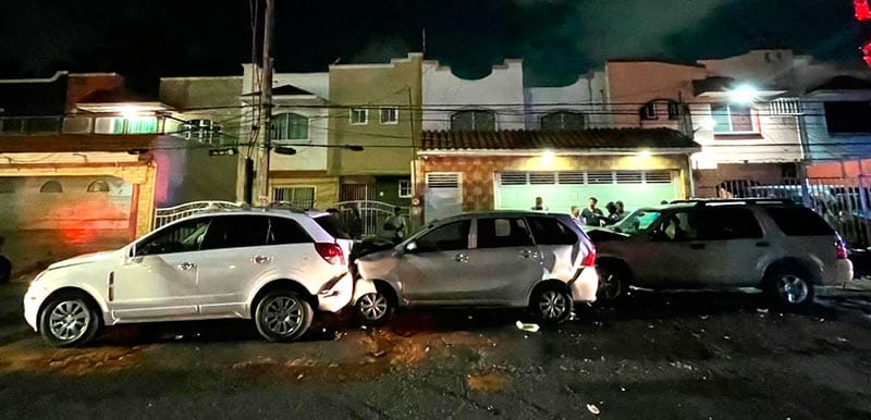 Ahí se vieron involucrados una camioneta, de la marca Ford tipo Explorer, cuyo operador iba en presunto estado de ebriedad, habría impactado a una camioneta, marca Toyota, tipo Avanza, proyectándolo contra una unidad, marca Chevrolet, tipo Captiva que a su vez le pegó a un Toyota Camry.