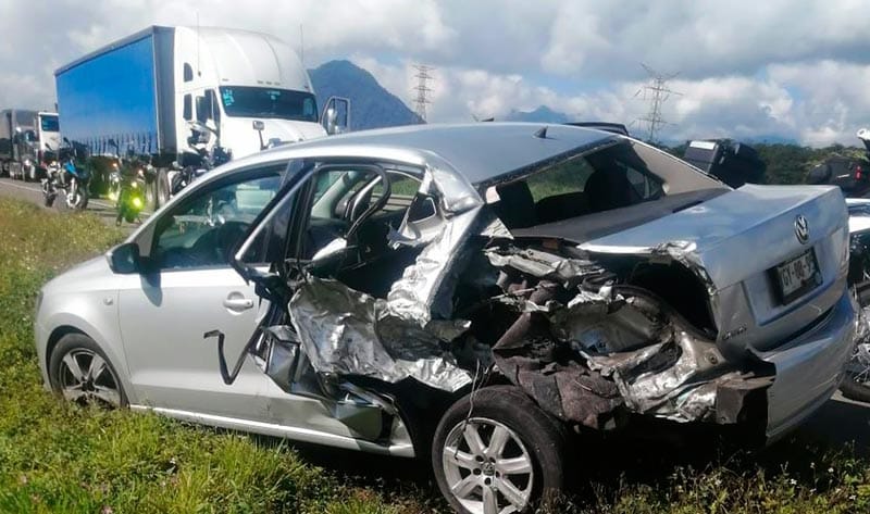 Se trata de un automóvil Volkswagen Vento color plata, placas YGY-88-95 de Veracruz, al que “rebanó” de la parte lateral izquierda y lo proyectó contra dos motocicletas deportivas BMW que circulaban por ese carril.