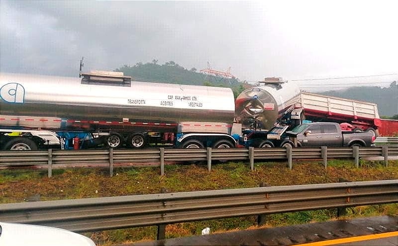 En la carambola donde se vieron involucrados dos unidades de carga pesada, dos camionetas y un vehículo particular tipo Sedán, no se reportaron personas lesionadas ni fallecidas.
