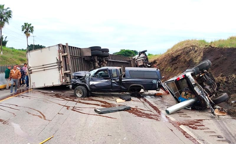 El accidente múltiple obligó al cierre de la circulación vehicular por ese tramo de la autopista Córdoba-Veracruz, en tanto paramédicos auxiliaron a seis personas que resultaron con lesiones menores, golpes contusos y quizá alguna fractura.