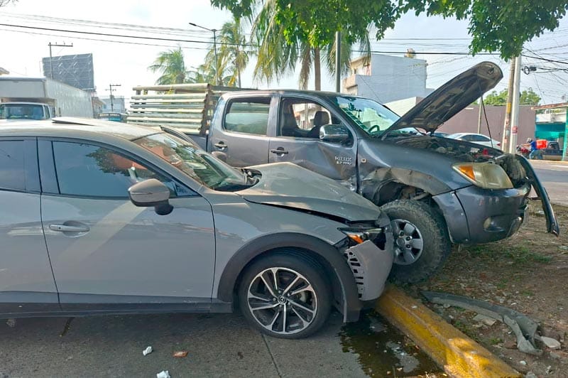 A la altura de la colonia Pascual Ortiz Rubio, en la ciudad de Veracruz, hubo un aparatoso accidente donde tres vehículos chocaron y dejaron daños materiales cuantiosos.