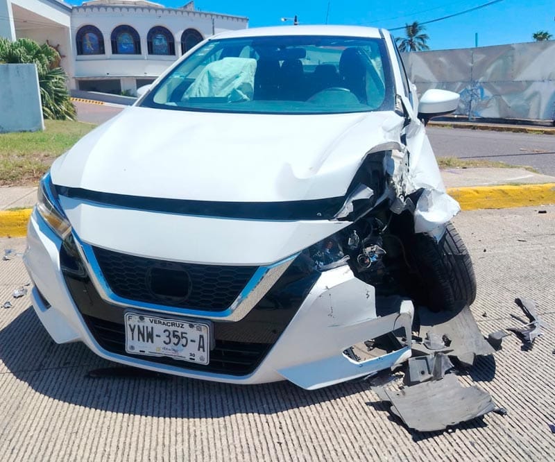 Estaban en la glorieta localizada frente al Hotel Mocambo, pero cuando ya estaban a medio carril impactaron a un automóvil Nissan Versa, con placas YNW-355-A de Veracruz, color blanco.