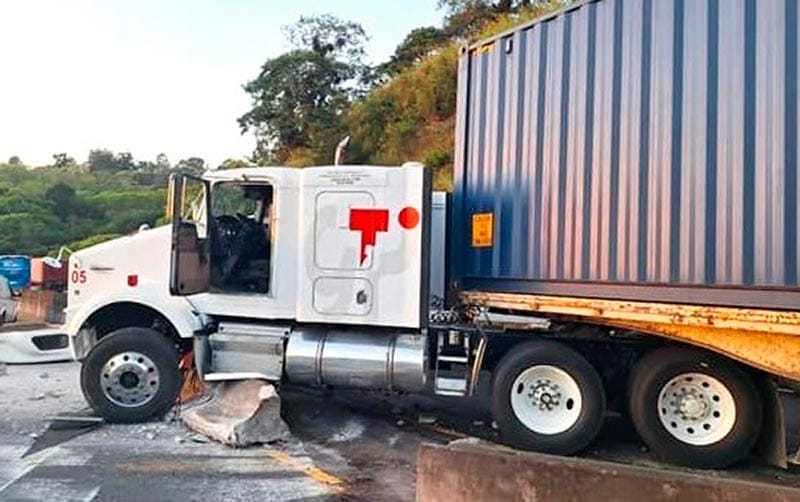 Poco después se impactó un tractocamión Freightliner color blanco, el cual circulaba sobre el carril con dirección al puerto de Veracruz acoplado de doble semirremolque transportando contenedores con mercancías.