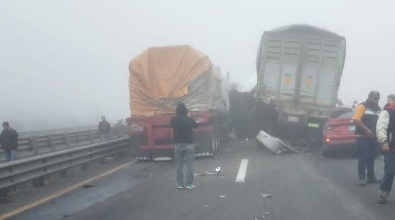El accidente múltiple se registró a causa del piso mojado por la pertinaz llovizna, los densos bancos de niebla, combinado con el exceso de velocidad en que viajaban y la falta de pericia y precaución de los conductores.