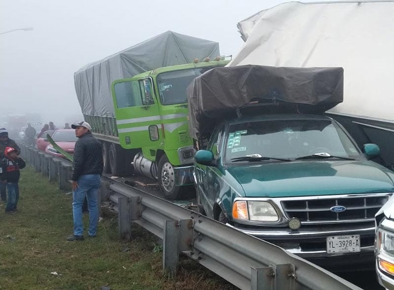 La carambola se suscitó en punto de las 9 de la mañana en el kilómetro 221 del tramo carretero Ciudad Mendoza- Acatzingo, justo un kilómetro antes de llegar a la Plaza de Cobro 027 de Esperanza, Puebla.