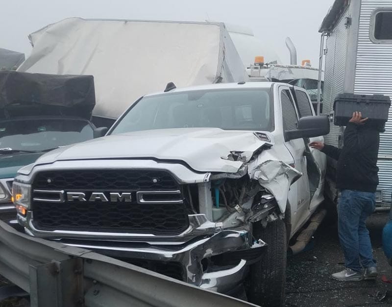 De acuerdo a la versión de los gendarmes de la Guardia Nacional división carreteras, en la carambola participaron ocho vehículos: un camión Torton chato de color verde marca international; una camioneta Ford F150 cabina y media, color verde; una camioneta Chrysler Ram Súper Duty, doble cabina de color blanco; un vehículo particular Sedán Kia en color naranja; camioneta Dodge Ram con caja cerrada de color blanco; un tráiler Kenworth Kenmex de color blanco con caja seca; una Camioneta Chevrolet GMC de color verde con caja cerrada y un vehículo Pontiac Matiz de color azul.