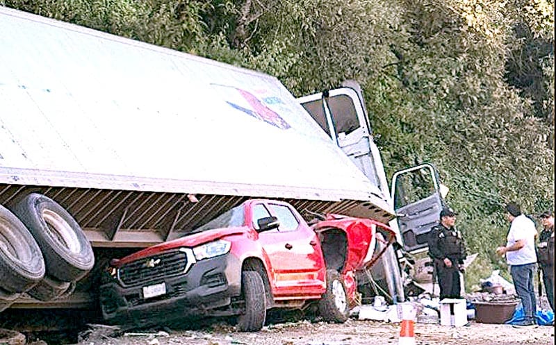 Impactó inicialmente a una camioneta Chevrolet Colorado por alcance y, casi al mismo tiempo, con el semirremolque colisionó contra la camioneta Nissan NP300, carrocería caja seca, color blanco, que circulaba en el carril contiguo, volcando aparatosamente.