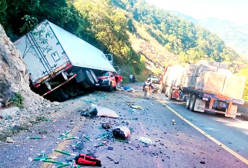 Un accidente múltiple registrado el domingo sobre autopista Puebla-Orizaba, en las Cumbres de Maltrata, donde un tractocamión Kenworth embistió a dos camionetas, dejó como saldo a tres personas gravemente lesionadas.