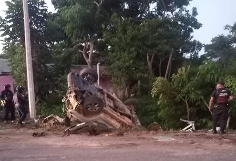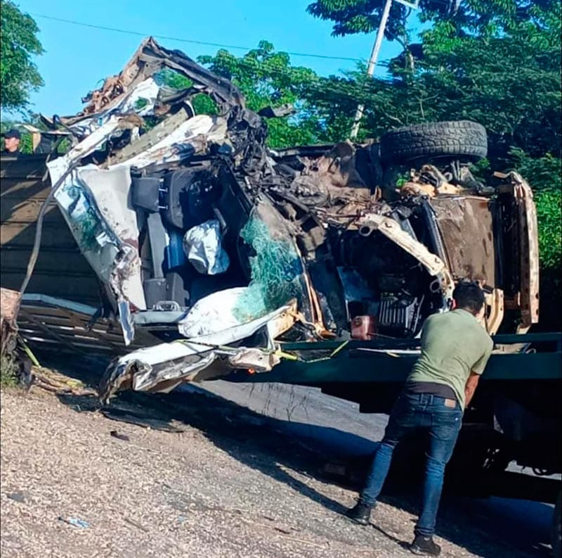 Héctor Miguel no pudo frenar a tiempo y chocó brutalmente contra el tráiler, volcándose después, en el lugar murieron tres jornaleros y dos resultaron con lesiones, luego fueron enviados al Hospital de Isla.