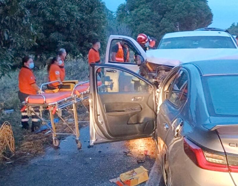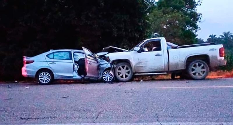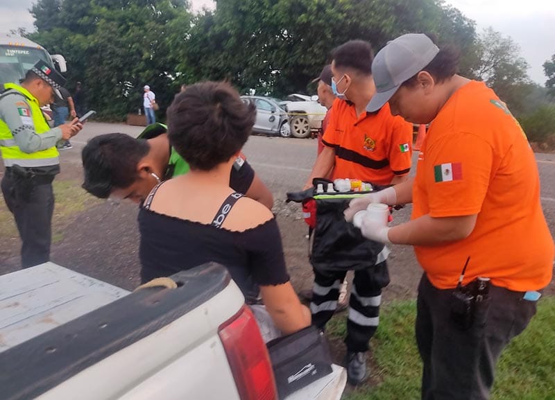 La policía estatal constató que en el lugar habían chocado de frente un auto Honda Civic color plata y una camioneta Chevrolet Silverado color blanco, resultando afectados los ocupantes de ambos vehículos.