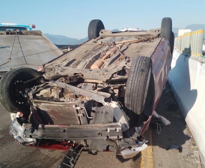 Amatlán de los Reyes, Ver.- (AVC) Dos personas lesionadas, daños materiales considerables y una inmediata movilización de cuerpos policiales y de rescate, además del cierre parcial de la circulación vehicular de la autopista 150D Córdoba-Veracruz, fue el saldo que dejó el choque y volcadura de un vehículo particular poco antes de llegar al Trébol de Amatlán de Los Reyes.