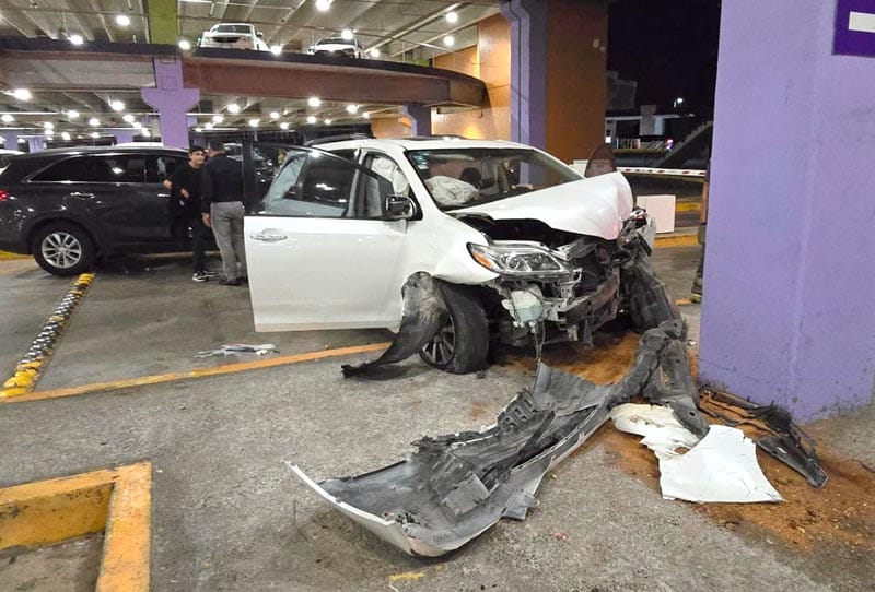 Ya en el interior, la Sienna continuó su trayectoria descontrolada y golpeó una camioneta de la marca Kia, tipo Sorento, que se dirigía a la pluma de salida.