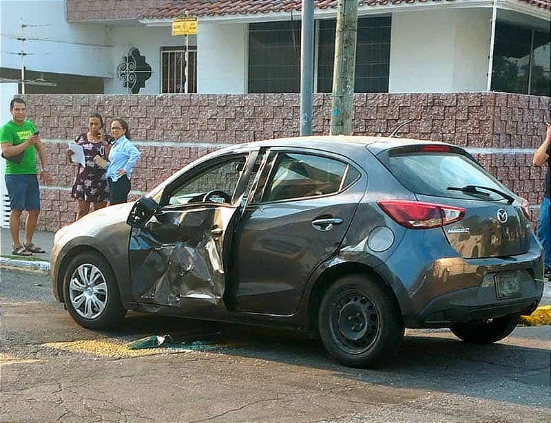 Lo anterior se suscitó en la avenida 20 de Noviembre, cuando el conductor de un vehículo Mazda gris cruzó su camino en la intersección con la calle Collado, impactándolo en el costado izquierdo con fuerza.