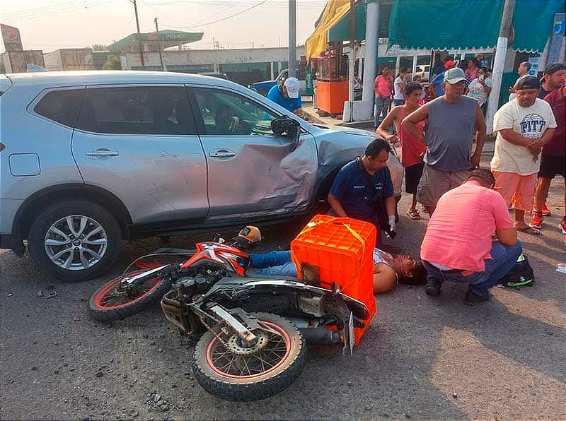 Un grave accidente tuvo lugar la mañana de este jueves en Martínez de la Torre, Veracruz, cuando un motociclista chocó contra una camioneta, resultando en cuantiosos daños materiales y el motorizado lesionado.