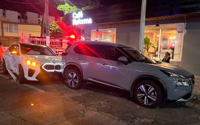 De acuerdo con testigos, una camioneta BMW blanca no respetó la preferencia de paso e intentó cruzar, siendo impactada por un automóvil Toyota Prius blanco que circulaba con dirección al bulevar Manuel Ávila Camacho.