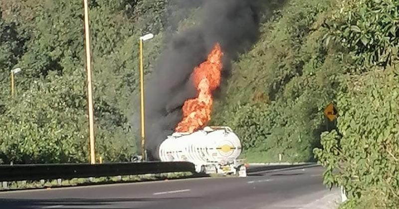 Un tractocamión acoplado a doble semirremolque cisterna con razón social SIMDA, cargado con gasolina, se incendió sobre autopista Puebla-Veracruz, tramo Acatzingo-Ciudad Mendoza, en la zona de las Cumbres de Maltrata.