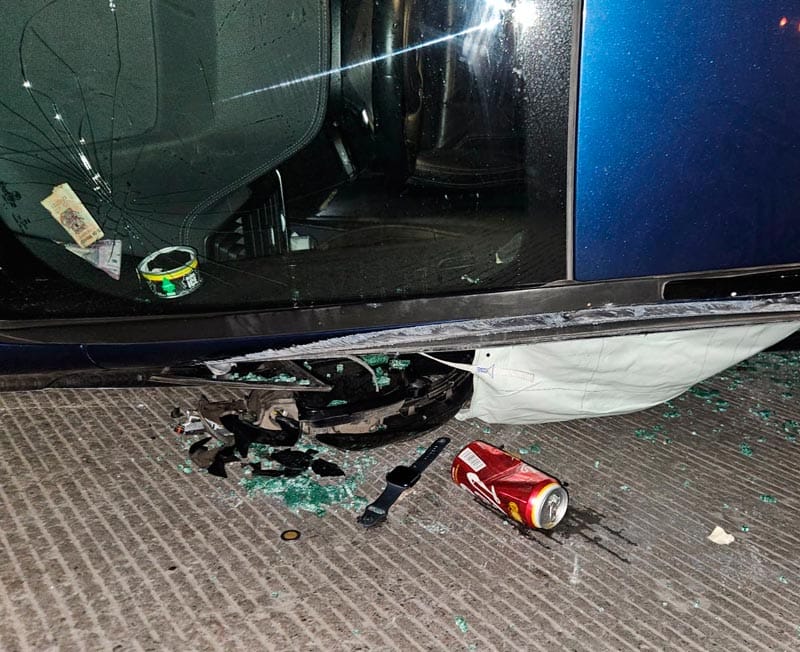 Al parecer el operador de la unidad, tipo X4, iba alcoholizado y a gran velocidad, perdiendo el control tras pegarle al costado de un automóvil estacionado, marca KIA, tipo Rio.
