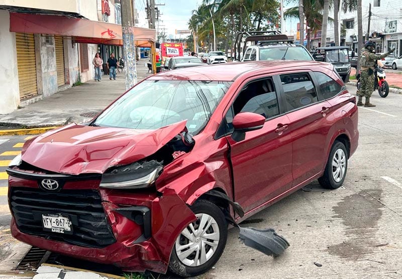 A la altura del fraccionamiento Costa Verde, en la ciudad de Boca del Río, hubo un percance vial entre una vagoneta, tipo Avanza, y una unidad de Mega Cable, dejando cuantiosos daños materiales.