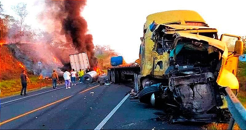 Dos tractocamiones chocaron de frente sobre autopista Tuxpan-Tampico, en jurisdicción del municipio de Naranjos, al norte de Veracruz, generándose un incendio que arrasó con una unidad, en el accidente un operador murió.