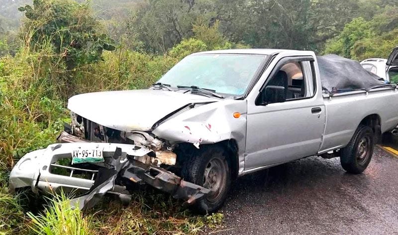 Cerca de la desviación a la localidad Mesa de Sombreros, el automóvil Nissan Tsuru chocó de frente contra una camioneta Nissan NP-300, gris, con placas XV-95-713 de Veracruz, utilizada para el reparto de agua purificada.