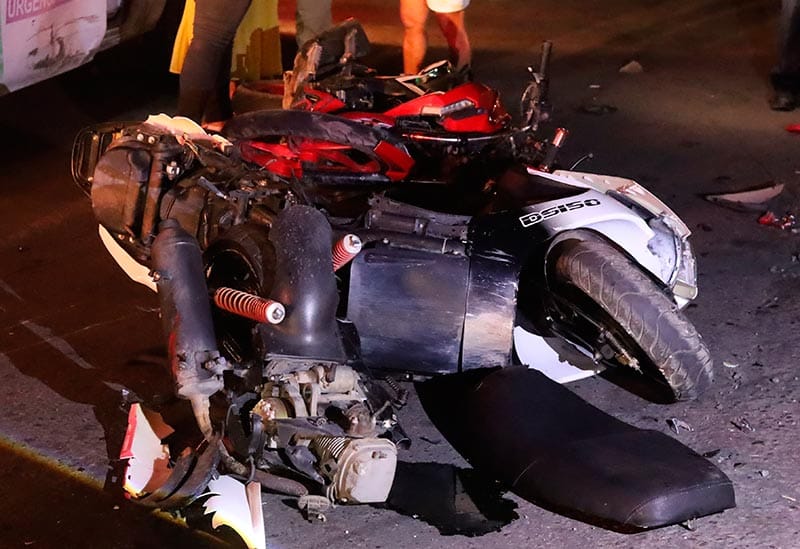 En la carretera federal 150, en el tramo Boca del Río-Paso del Toro, durante este fin de semana, se dio un fuerte accidente vial al colisionar dos motociclistas, a la altura de la gasolinera Los Mangos en Medellín de Bravo.