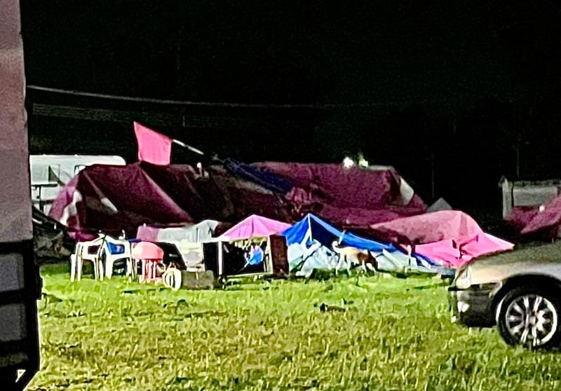 Poza Rica, Ver.(AVC).- La noche de este lunes durante una intensa lluvia registrada en Álamo colapsó la carpa de un circo instalado en terrenos de la feria.