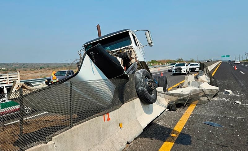 Tras la colisión salió proyectado hasta el acotamiento, mientras que el tráiler se estrelló contra el muro de contención y terminó encima de los bloques de concreto.