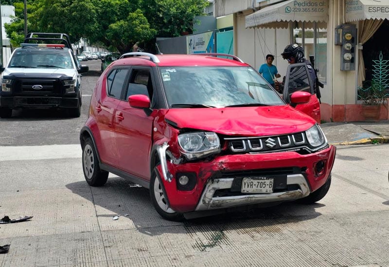 En el fraccionamiento Virginia de Boca del Río, se registró un accidente que dejó daños materiales y lesiones leves en los conductores involucrados.