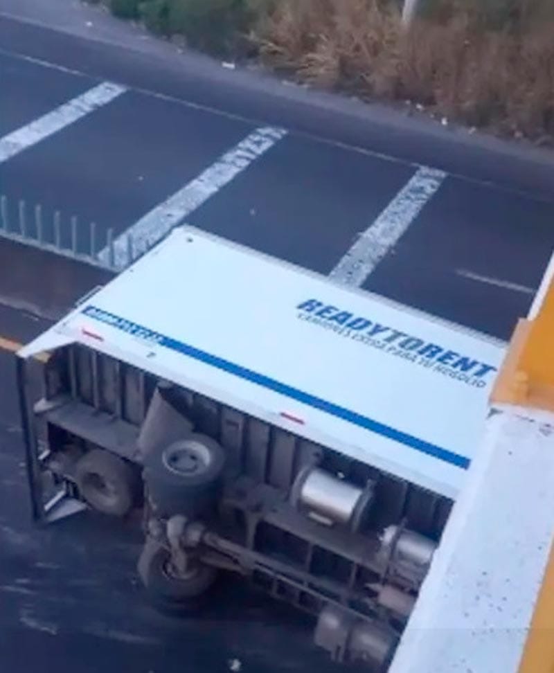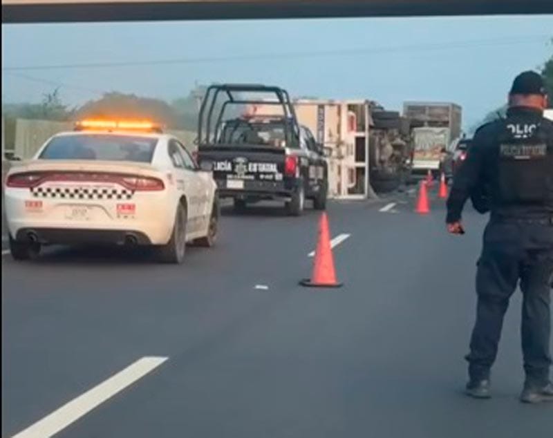 En el libramiento de la carretera federal Paso del Toro Santa Fe a la altura de la desviación hacia Dos Lomas, dentro del municipio de Veracruz, hubo un aparatoso percance y volcadura, luego de colisionar dos unidades de carga, uno tipo volteo y uno de caja cerrada, propiedad de una empresa de paquetería.