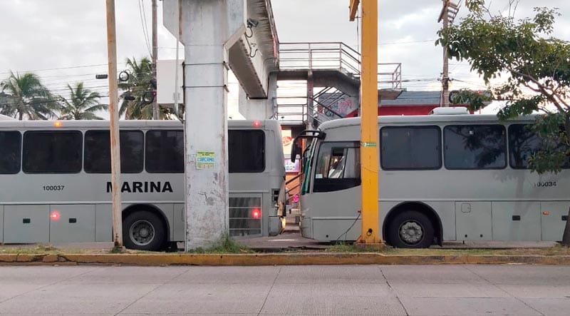 En la avenida Ejército Mexicano, en el carril con dirección hacia el cuartel de La Boticaria en el municipio de Boca del Río, hubo un accidente por alcance, de dos autobuses de la Secretaría de Marina y ocasionaron problemas de circulación.