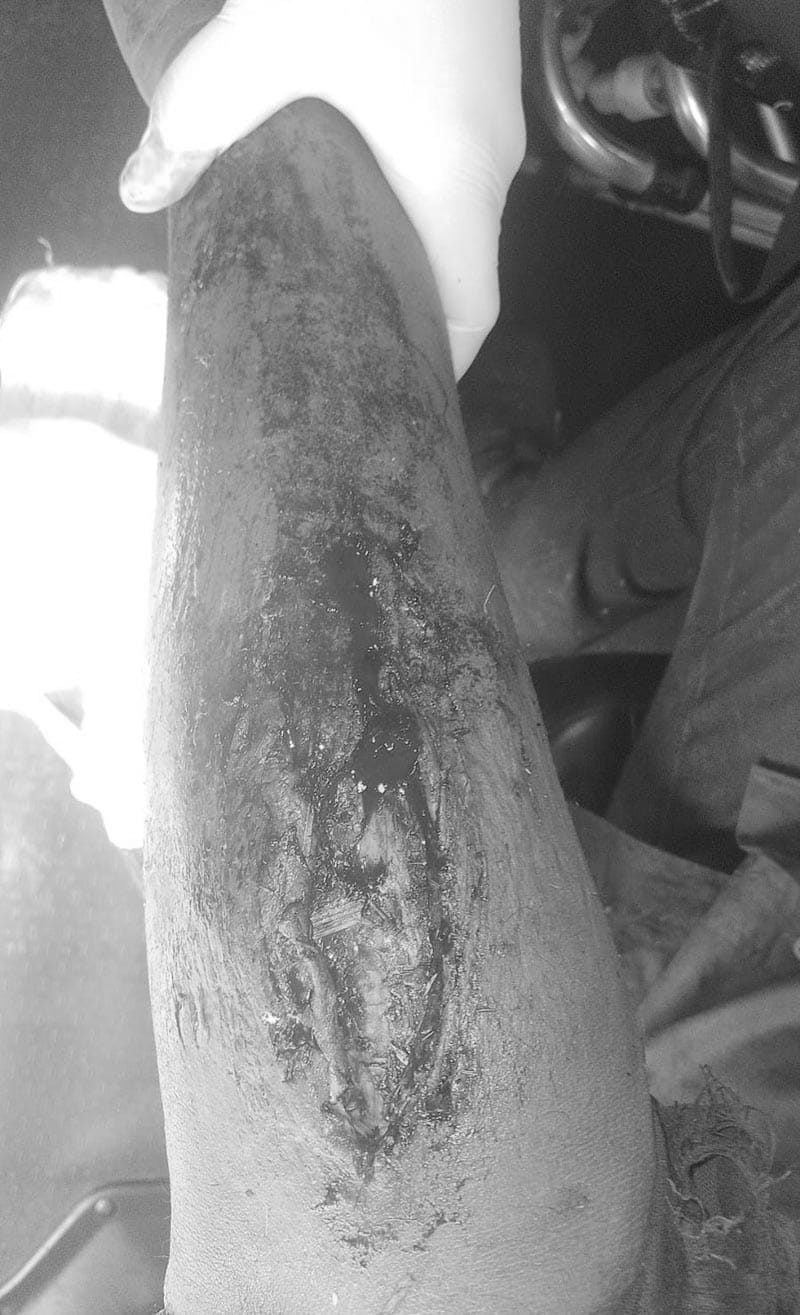 Los paramédicos de Protección Civil municipal de Medellín de Bravo brindaron atención inmediata al agraviado, quien presentaba un profundo corte en el brazo izquierdo y posiblemente una fractura.