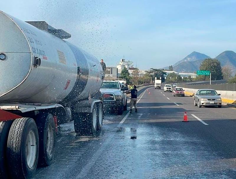 Nogales, Ver.(AVC).- Una inmediata movilización de diferentes cuerpos de emergencias y rescate, así como la obstrucción parcial de la circulación vehicular de la autopista 150D Puebla-Orizaba, fue el saldo que dejó el conato de incendio por sobrecalentamiento de balatas de un tráiler que remolcaba dos pipas cargadas con más de 60 mil litros de aceite líquido combustible flamable a la altura del municipio de Nogales.